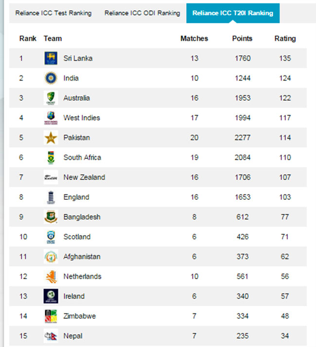 २० असार, काठमाडौं । नेपाल अन्तराष्ट्रिय टी-२० क्रिकेटको वरियता क्रममा प्रवेश पाएको छ । तर, नेपाल पुछारमा परेको छ ।