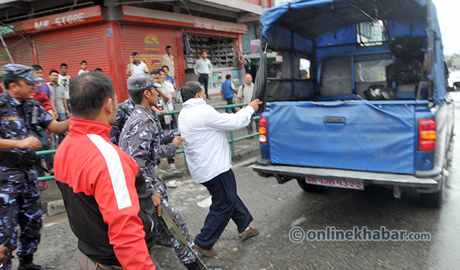 ठूलै जिउ-डालका भए पनि छाता बोकेका पालले बन्दूक बोकेका प्रहरीसँग भिड्न सक्ने कुरै थिएन, उनी प्रहरी भ्यानतिर हुत्तिए । सडकको डिलबाट मानिसहरुले यो तमासा हेरिरहेका थिए ।