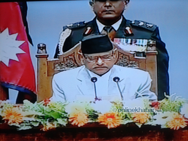 राष्ट्रपतिले आफ्नो सम्बोधनमा भने- ‘संविधान गतिशील दस्तावेज हो । यसको सफल प्रयोग गर्दै सम्बृद्धि हासिल गर्न आग्रह गर्छु । जनताका प्रतिनिधिद्वारा संविधानसभाबाट पारित यो संविधान भौगोलिक अखण्डता र स्वाधीनता र जनतामा निहीत सर्वभौमसत्ताको संरक्षण गर्ने साझा दस्तावेज हो ।’